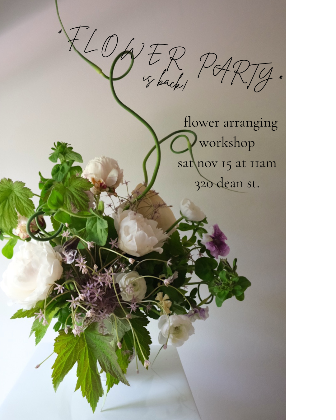 Studio Rien offers flower deliveries throughout Brooklyn and lower Manhattan, as well as pick up in Fort Greene.